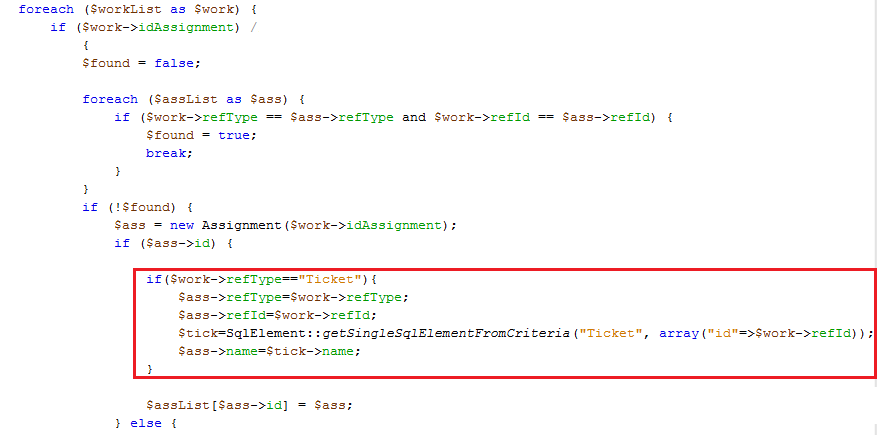 I continued to analyze the imputationLine.php file and I think the solution lies in the getLine () function. My work ticket type being linked to an assignment with refType type activity, the assignment is the same as that of the activity.