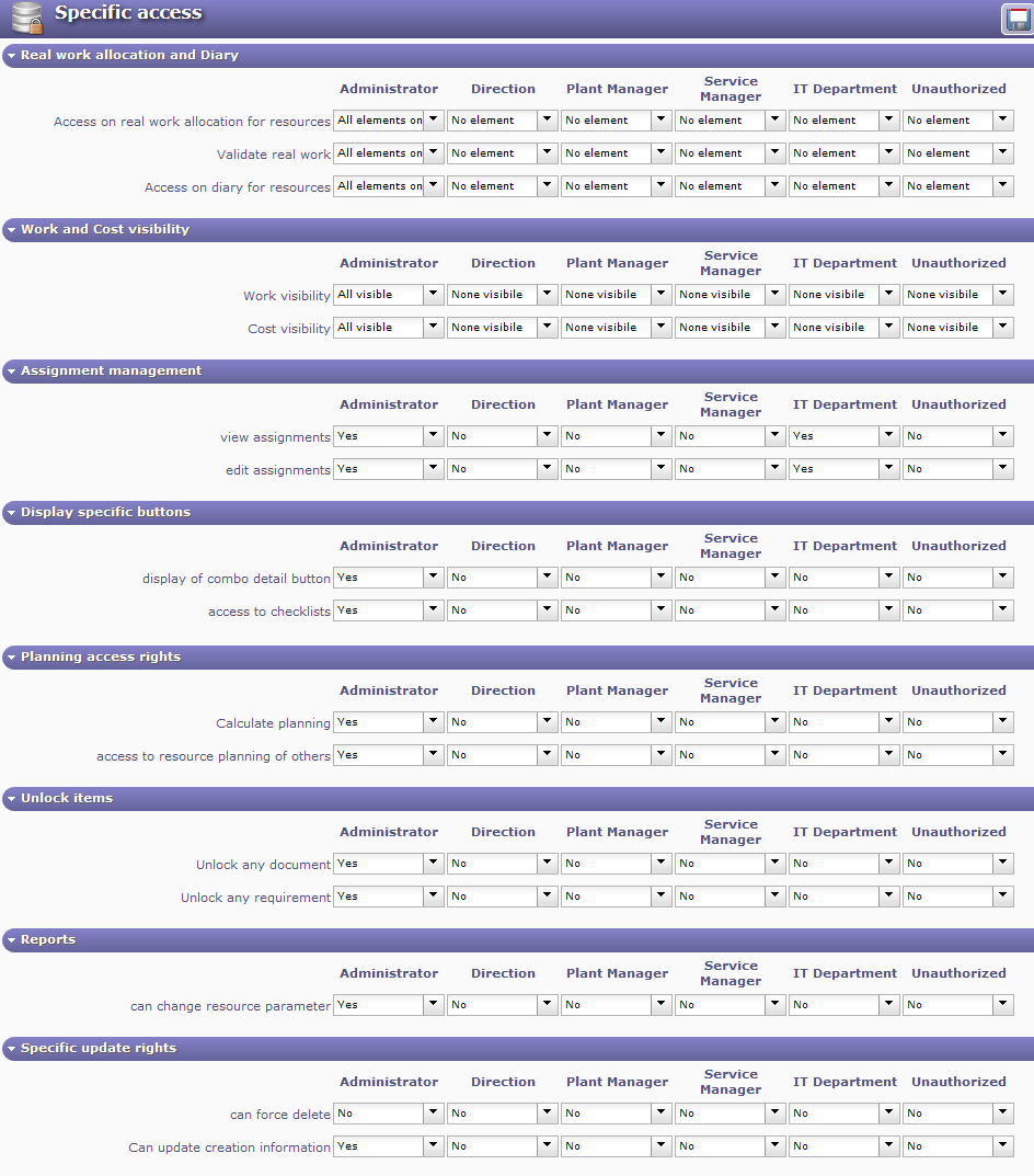Could you post screen shots of specific access rights, user definition, user affectation and activity.