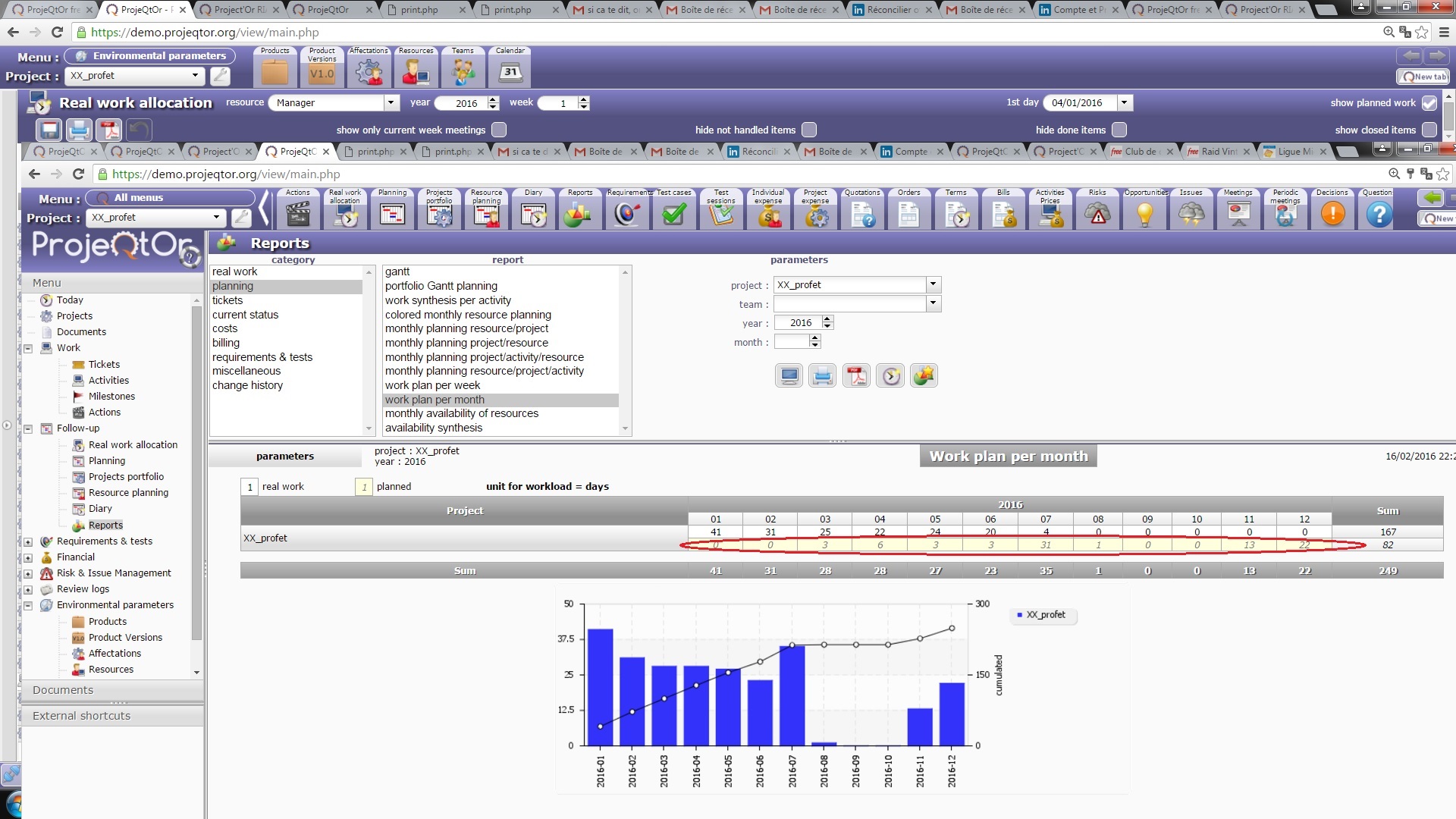 In the menu “report, planning, work plan per month” (see attached display copy), how is calculated (or where do it come from) the planned days ? : see data surrounded in red in the attached display copy.