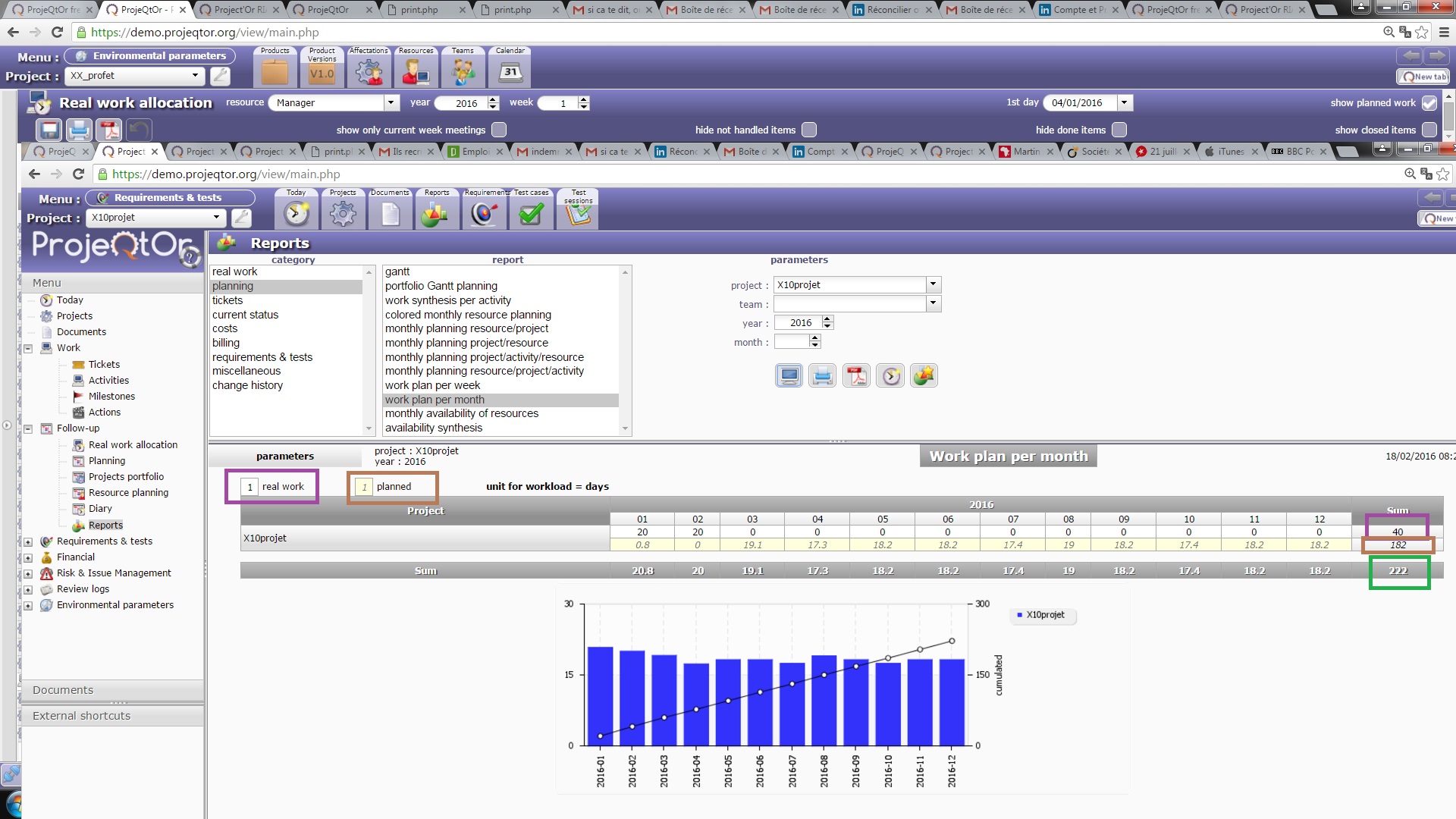 I have created a projet with only one resource on one year. The planned days = assigned days = reassessed days = 212. The resource a real work allocation of 25 days and no shift is identified on the planning. However in report “planning work plan by month” the sum of days is 215 instead of 212 (see attached copy display, surrounded in red) ?