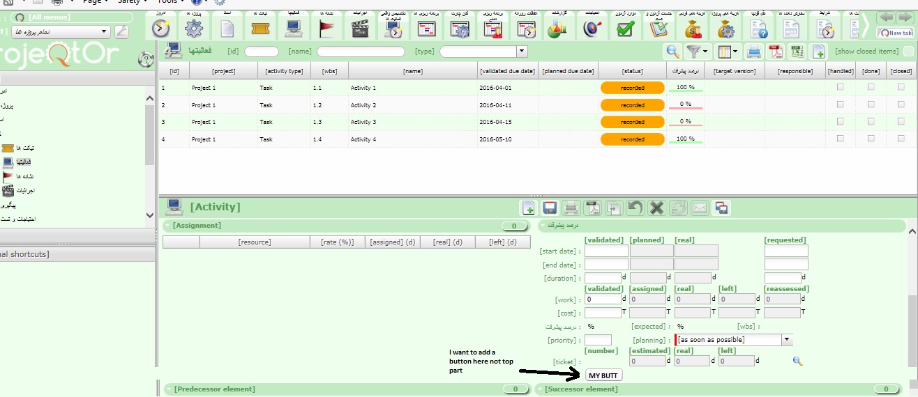 Thanks for your answer. I checked objectButtons.php. As i understood it is related to the buttons on top. I showed the place i want to place my button in the attached photo.