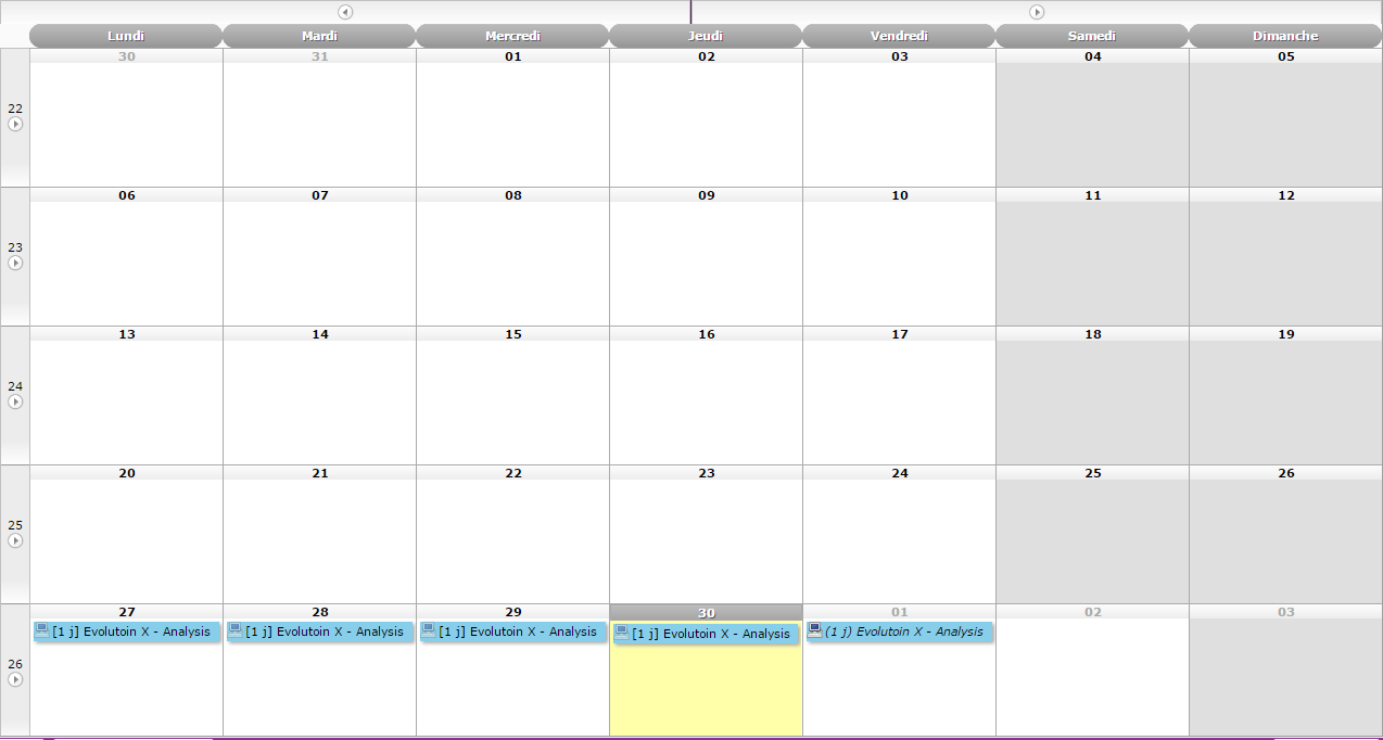 Example : Week No. 26 , Today we are Thursday 30th : I see the milestones of days of the week of June , but not those of Friday July 1st