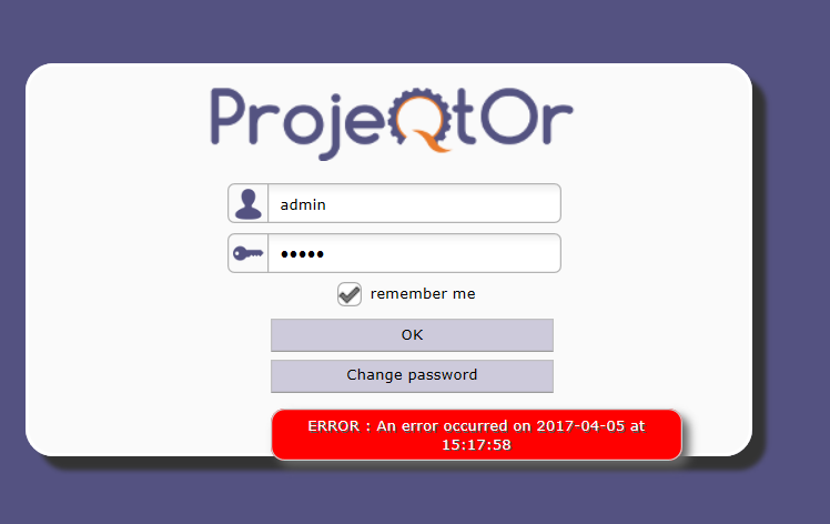 I'm deplying at first time projeqtor application but facing login/password issue. In readme file, they recommended to log into with admin/admin but it's not working for me, see attached screenshot for more detail
