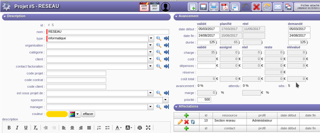 Project progress is then automatically calculated.