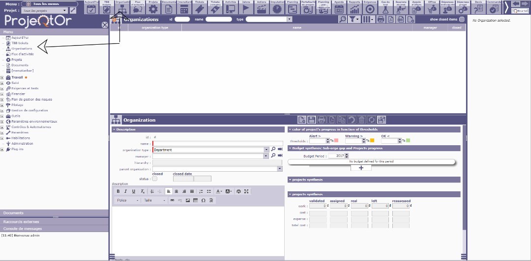 ProjeQtOr free project management software - Use of organization - ProjeQtOr