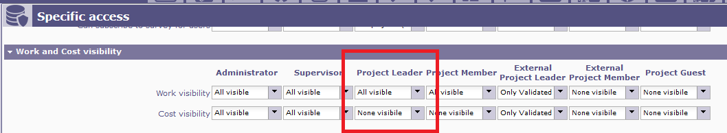 I want to change configuration to make project manager(chef de projet) does not see project cost information