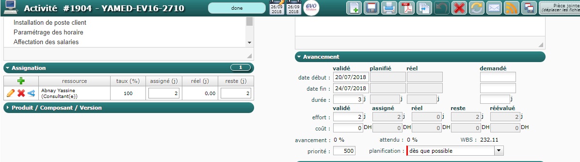 how to follow the consumption of the days declared at the beginning of the project in liaison with the interventions made in this project