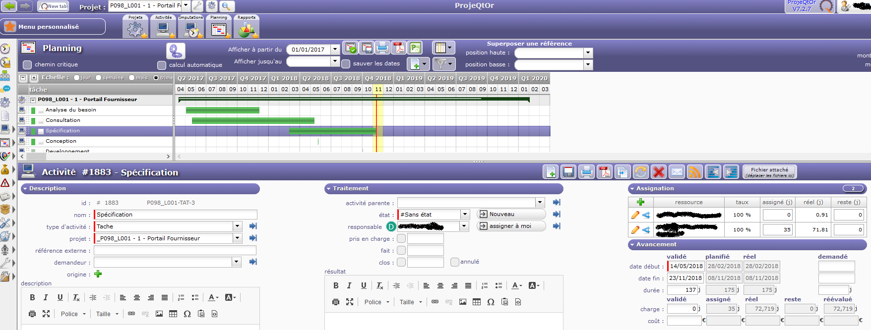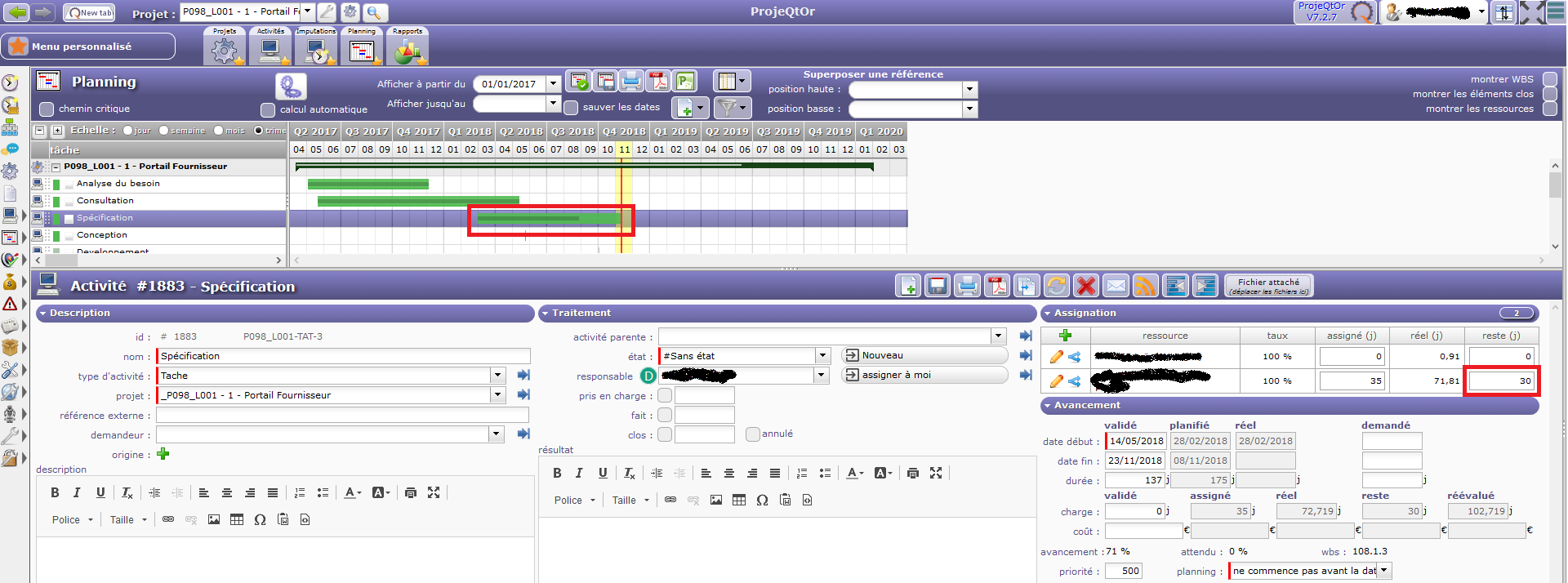 Look at this planning : activity "specification" is well displayed on Gantt but left work is set with 0.