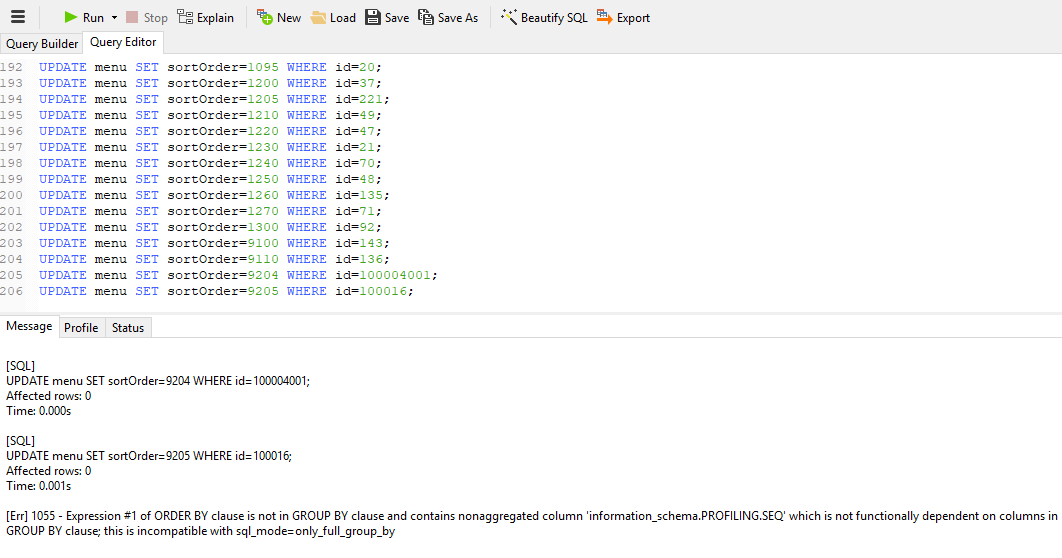 The Script was excecute, but I had and error on script and menu doesn't solve.