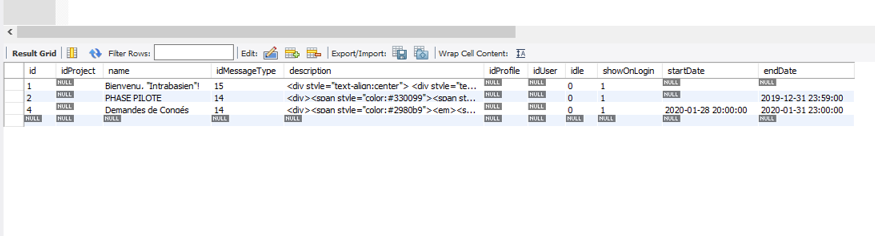 In the database, I find all my messages. Do you see something that prevents me to see them under ProjeQtOr?