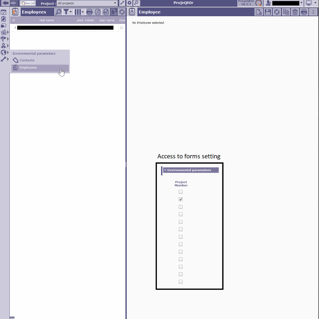ProjeQtOr free project management software - [SOLVED] Employees icon (and form) shown (Access to Enviromnmental forms disabled) - ProjeQtOr