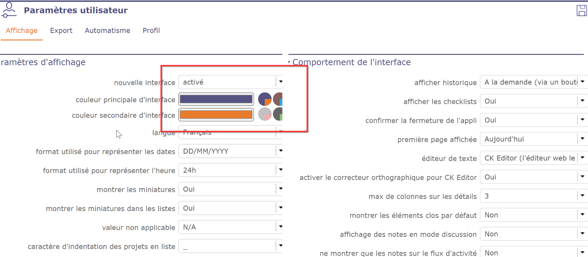 I also have some differences in the Users parametrs screen :