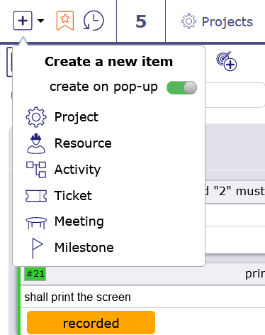 As for the creation, even with the rights, you are not likely to find the actions in this menu. It only offers the elements most used in ProjeQtOr and planning.