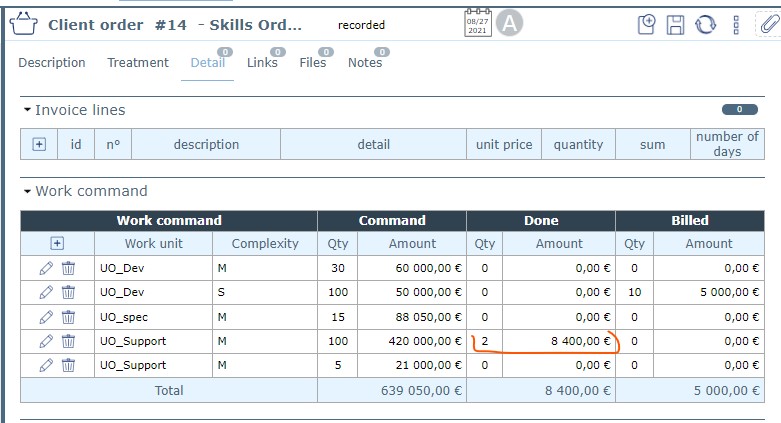 Once the work corresponding to a Work Unit is completed, I add the link to the Customer Order in the Activity's Revenue section.