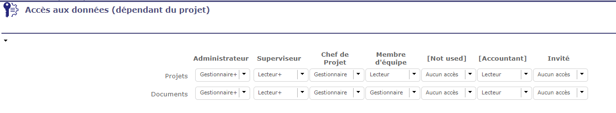 - project leader is set with "gestionnaire" rights (Read/Create/update/suppress - on its projects) on all document directories.