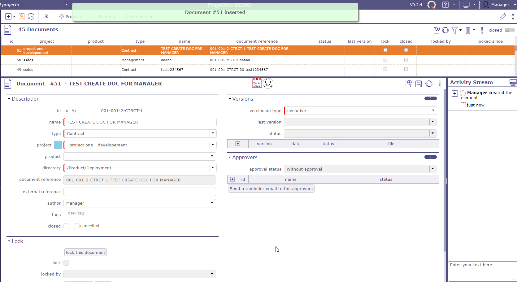 ProjeQtOr free project management software - V9.2.3 - Adding document issue - ProjeQtOr