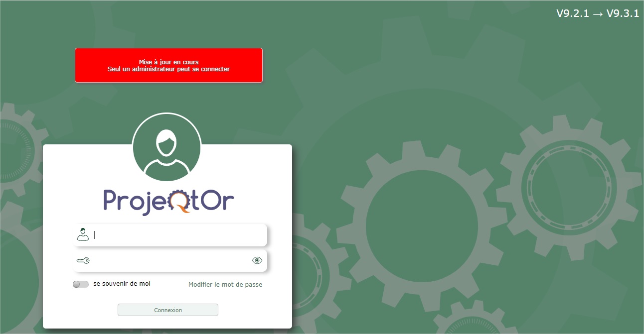 The message "Mise à jour en cours Seul un administrateur peut se connecter" remains on the screen for several days (see screenshot)