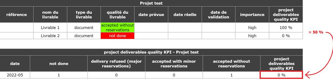 Thanks for your answer. Unfortunately, we are not averaging while doing our calculation. We have tested on a fresh install v 9.4.3. with 2 deliverables of same weight (high) : first one at 100% (completed/accepted without reservations) and the other one not done (0%).