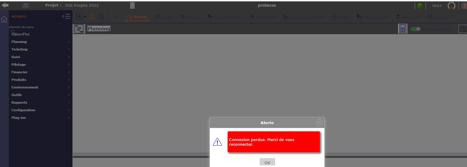 - user opened new tab in projeqtor and retyped the url => this closed the previous connection
