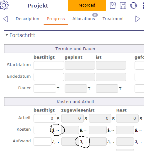 hope you are doing fine. When checking project -> progress i got symbols like € where there should (as i mention) be € or h (hours). Do i need to change anything in system (what/where - didn't find anything) or is this a bug?