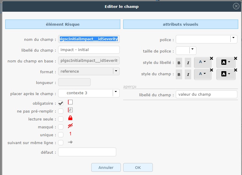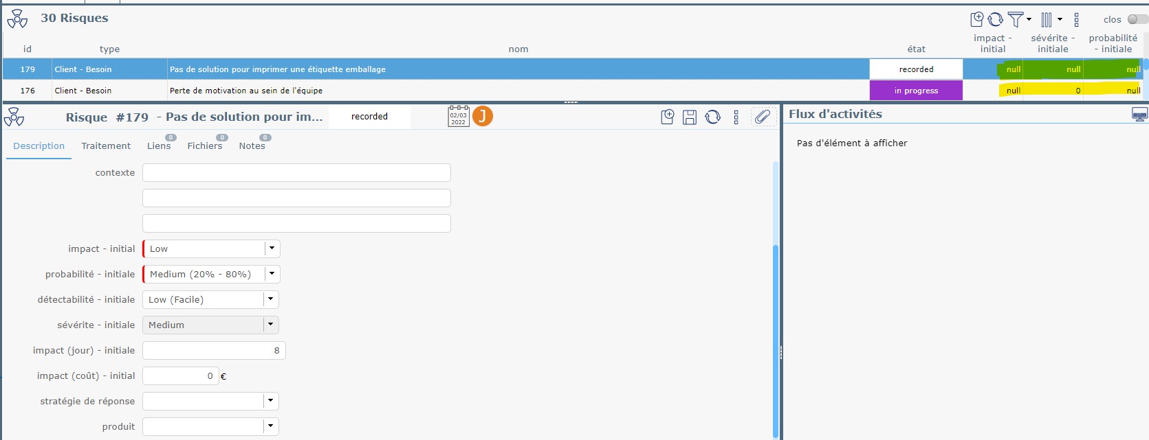 We've created new fields of type "reference" to display a list of values (on Risks).