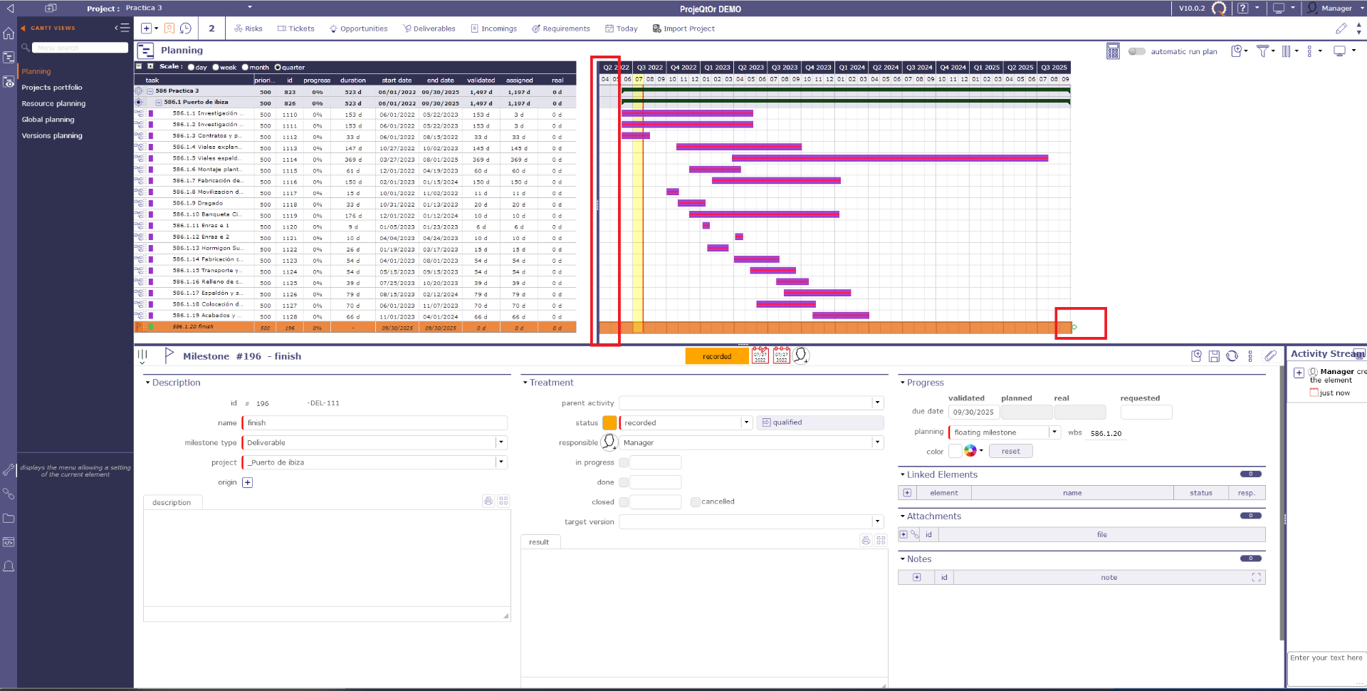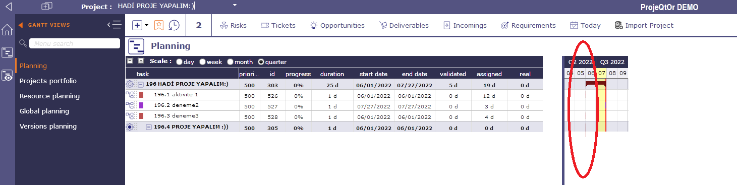 ProjeQtOr free project management software - Gantt view Milestone at end of a quarter - ProjeQtOr