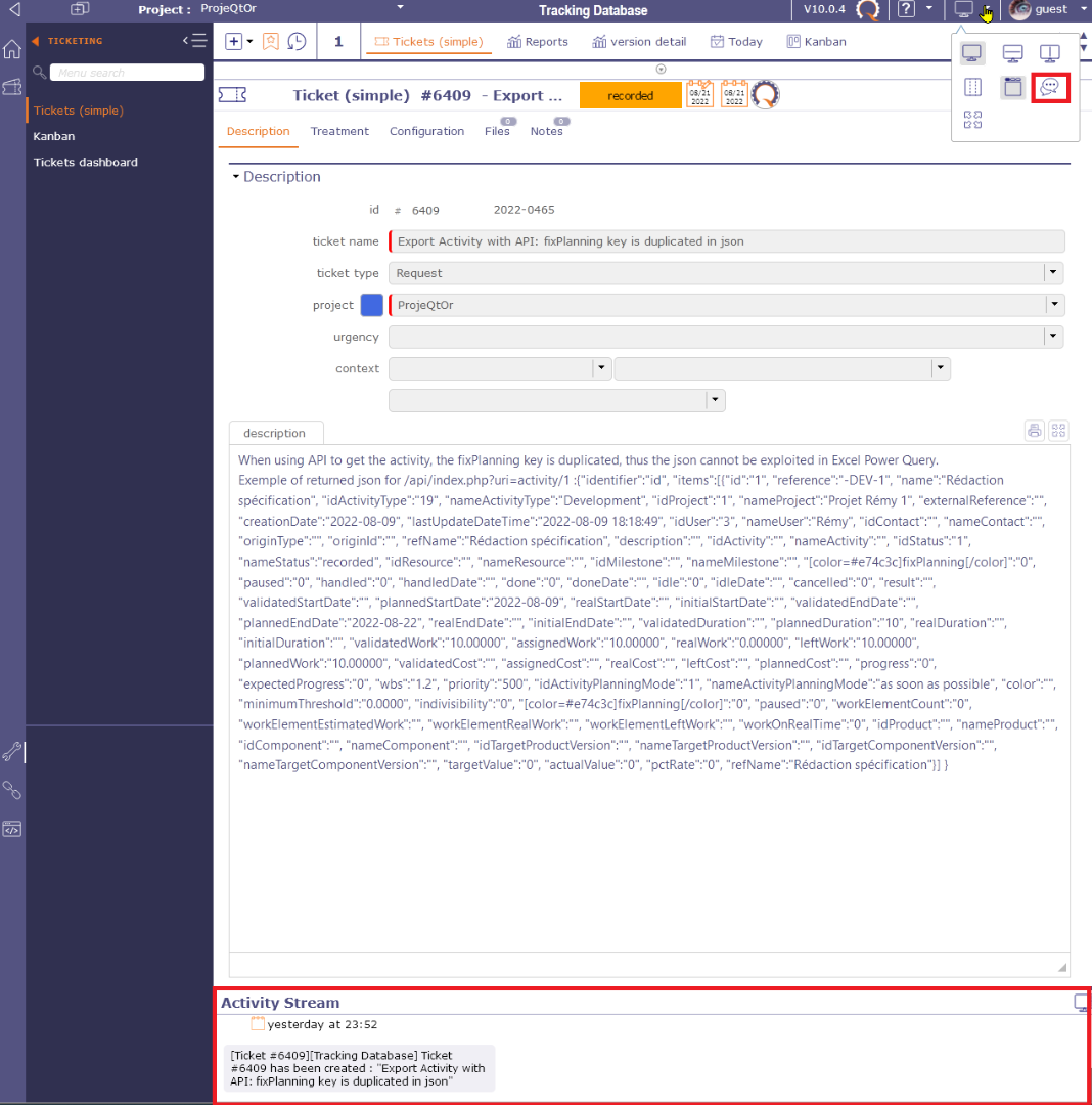 You can also show/hide the activity stream on a dedicated screen, whatever the global selection.
