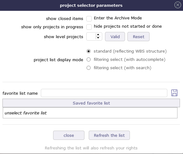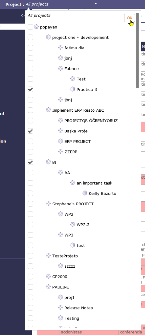 If you want to filter several projects with a drop down list, use the project selector in top left corner and use the setting "standard (reflecting WBS structure)"