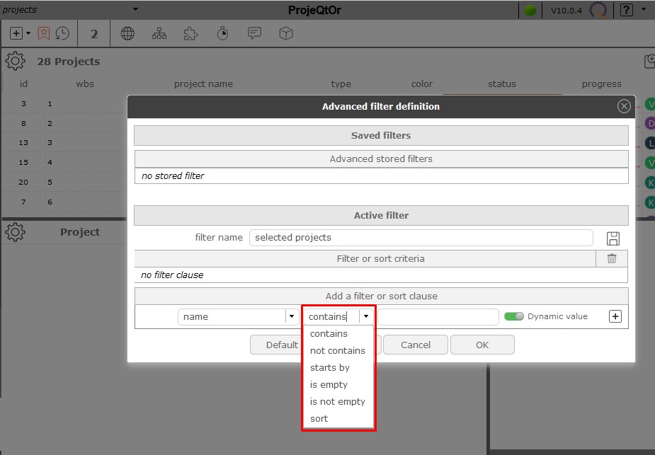 I am trying to make "Selected Projects" filter with dynamic filter feature, so it ask me to select projects from drop down to get required result.