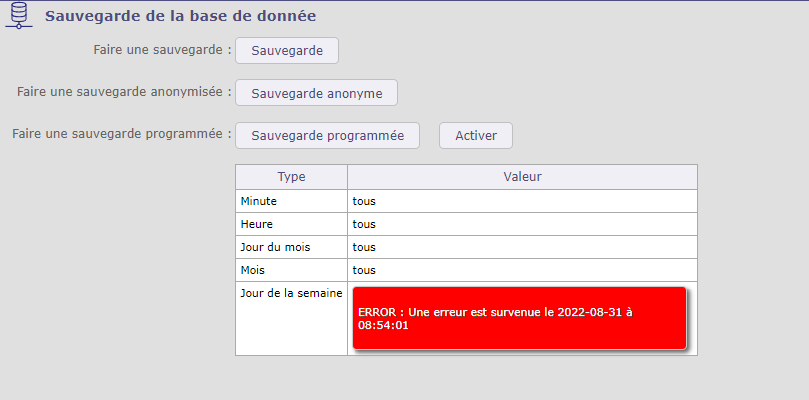 2022-08-31 08:53:33.651 ***** ERROR ***** [V10.0.4] on file '/var/www/projeqtor/plugin/backupDatabase/backupView.php' at line (90)