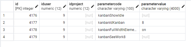 For my user it is stored in parameter with parametercode kanbanSeeWork8 and value null.