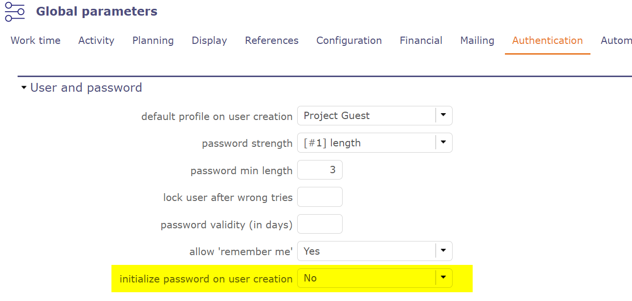 I am using ProjeQtor v 10.0.3, and I want to disable password change for first login when creating a new user,