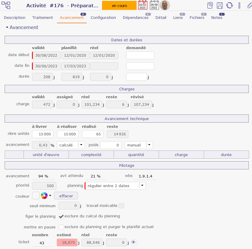 I will close all tickets linked to activities, then I will try to close activities if possible and see effects on the project where all fiels are in grey.