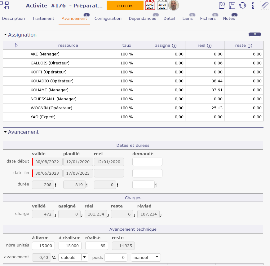Hello, I have a project blocked for all fields, withn "en cours" status. 2 activities of this project blocked in "en cours" status without any other choice in the dropdown list.