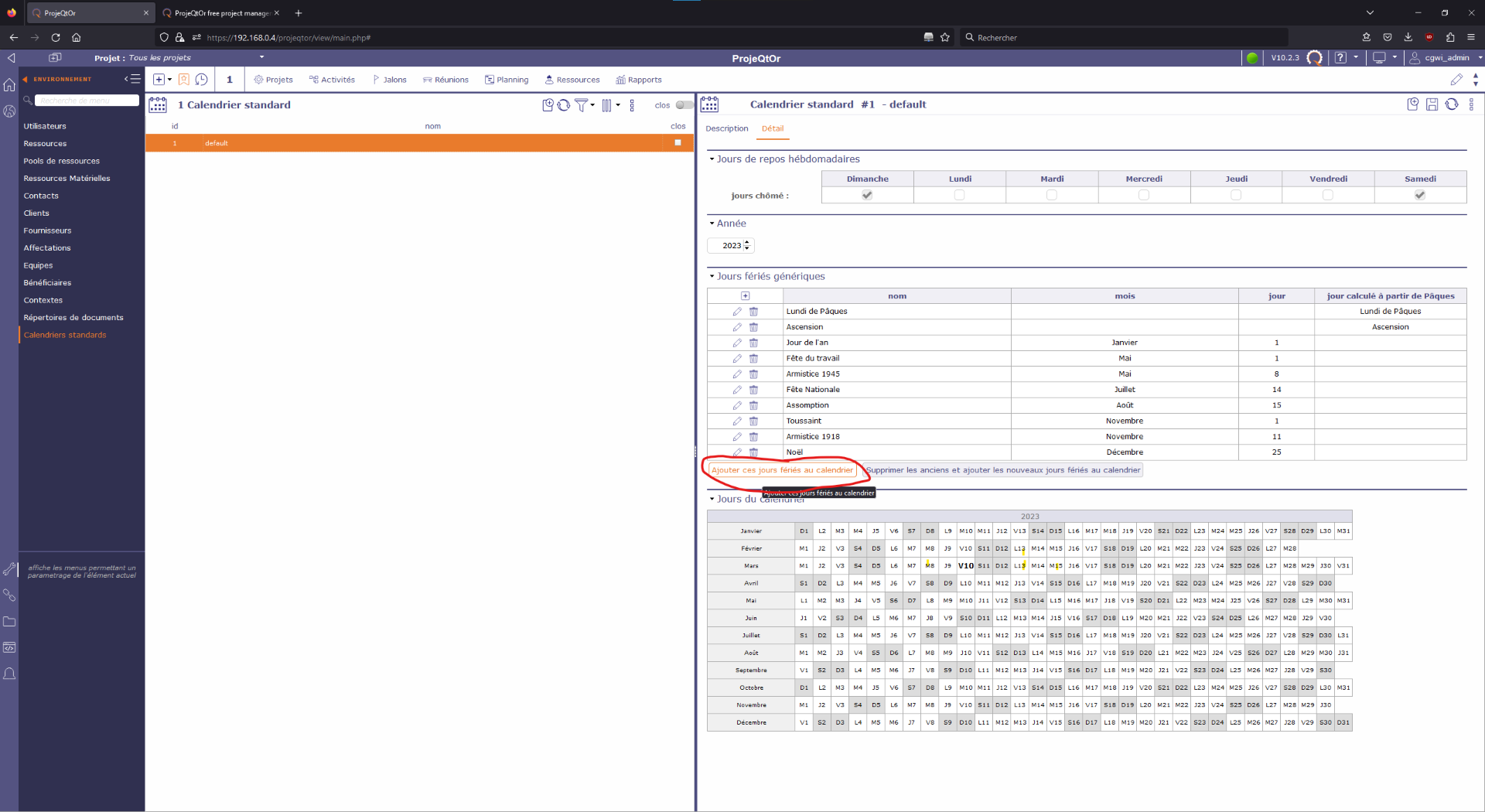 ProjeQtOr free project management software - [SOLVED] Adding public holidays in standard calendar doesn't work - ProjeQtOr