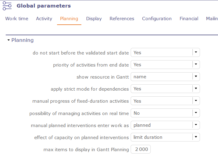 Did you change the max number of items in Global parameters / Planning ?