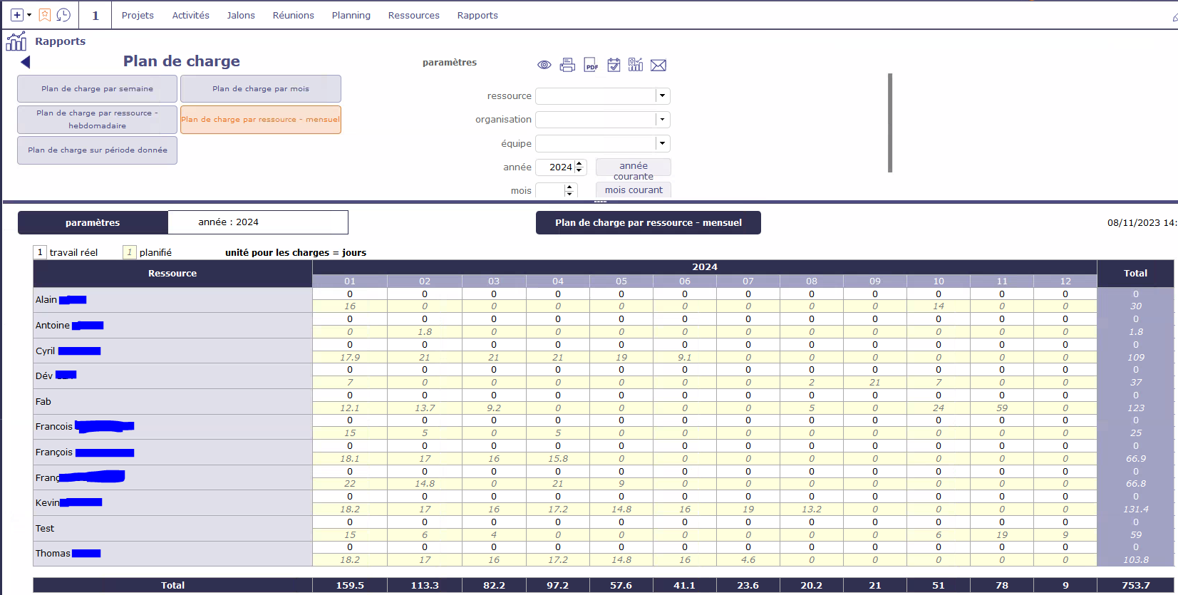 The resource François is used as an individual resource and in the Dev pool, as most of the resources. But in the workload report, it is duplicated cf screenshot. The workload itself is different. It would be nice to have the resource ID in a column to better understand what may happen. And then to be able to fusion them. Only one François is assigned to the project.