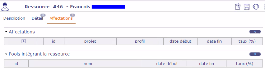 Enclosed : view of resources showing two François (and also two Franck), detailed view of François id 10 showing his assignment to the project, detailed view of François id 46 showing he is not assigned to anyproject.