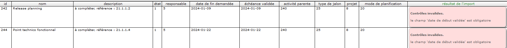 When trying to import MileStone, i get this error : "Field 'validated duration' is mandatory. This is a non sense for a milestone witch don't have duration... and even if i describe such a field in the import file, it's not ok.