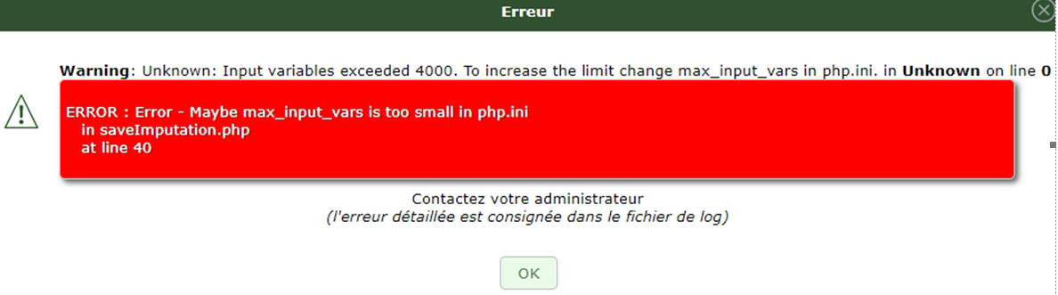You can either change the value in the php.ini file as suggested in the warning or you can also check if this user has the right activities to fill in and if he really needs all of them at the same time (too many lines to search in may not be really efficient when it comes to fill in the time spent).