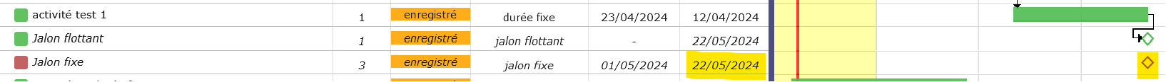 Then, this milestone is linked to a predecessor and the date is calculed according to this link (why not, it's a choice, and milestone is set to "late" and show red).