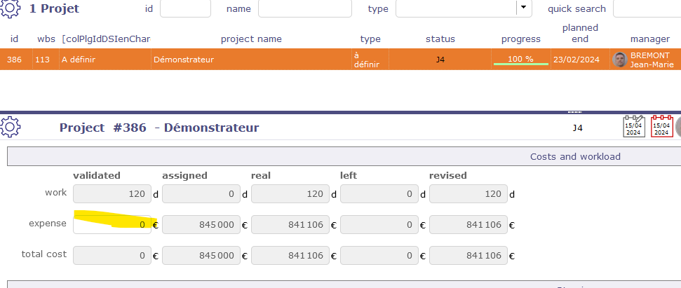 ProjeQtOr free project management software - Error calculating activity expanse : project validated expense set to 0 - ProjeQtOr