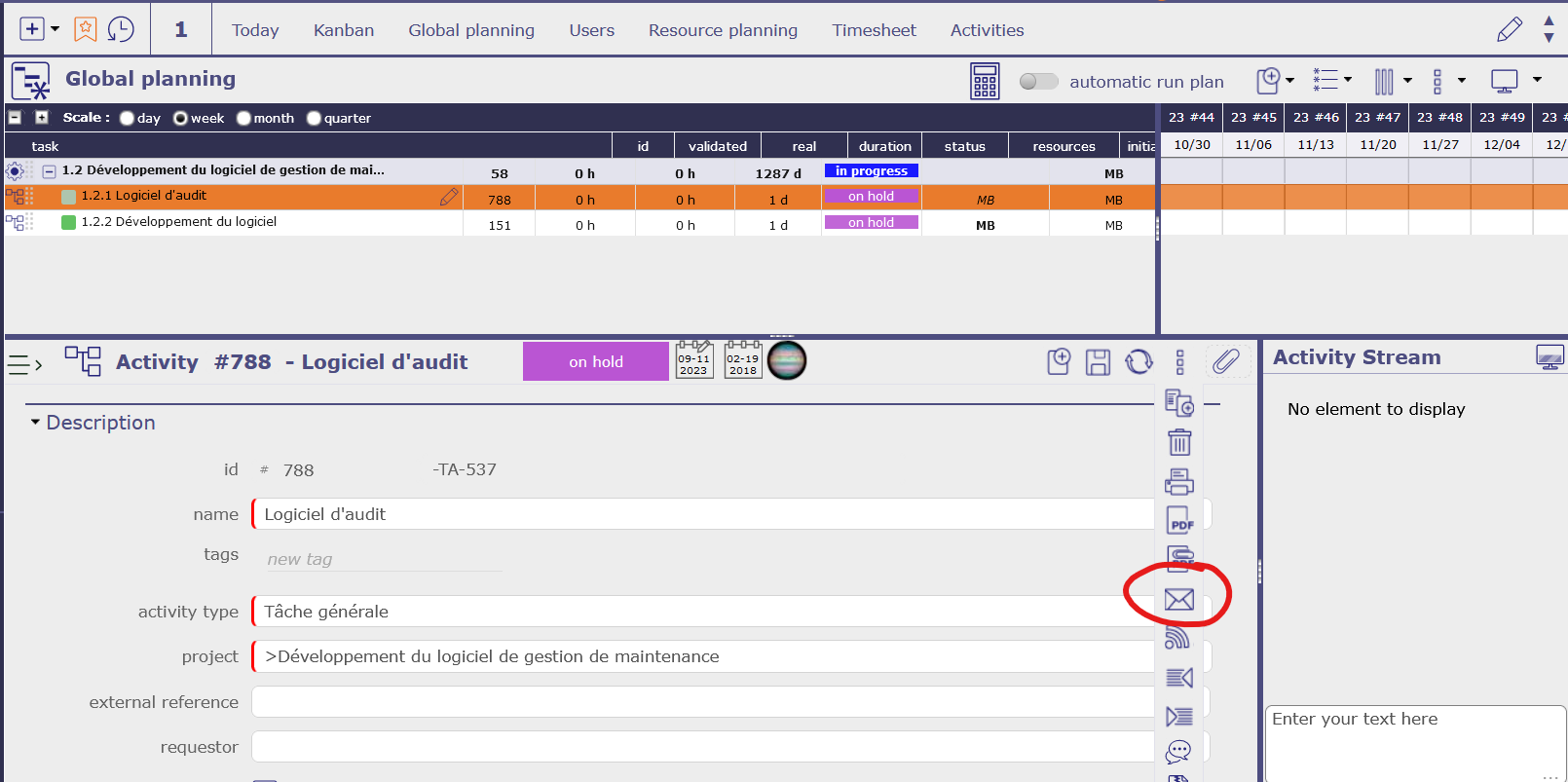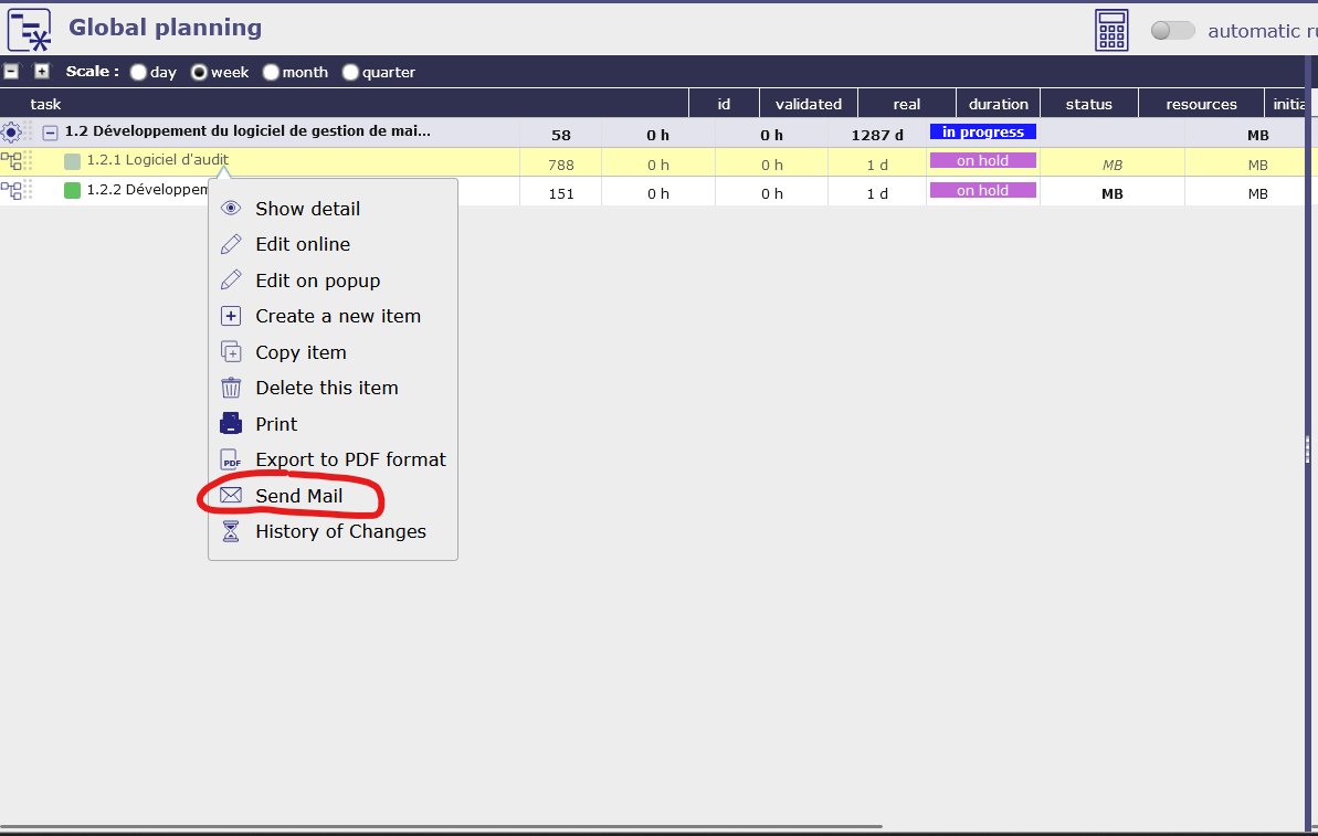 ProjeQtOr free project management software - Email detail of an element - ProjeQtOr