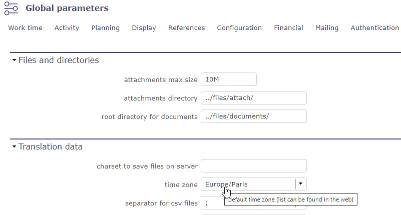I checked the global parameters in ProjeQtOr to ensure the timezone is set correctly.