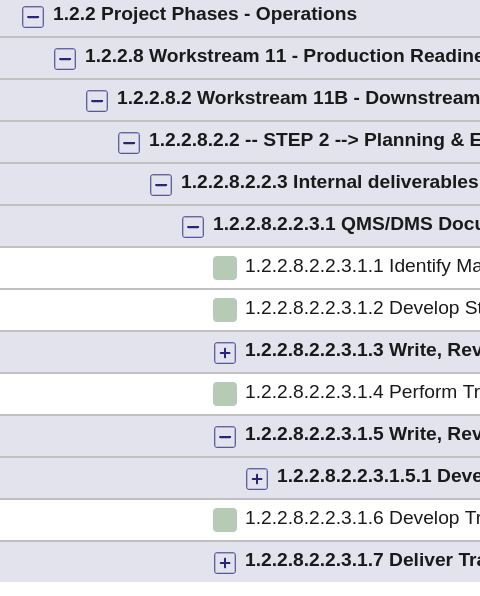 Using the filter feature, I would like to display only WBS section starting from 1.2.2.8.2.2.3.1.3.1.1.28.