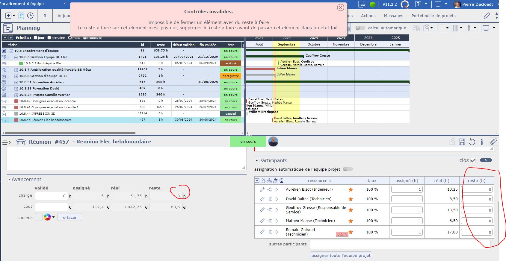 I've got a probleme, I'd change, on time sheet, the left of this meeting, but the left on progress section don't change and, I cannot close this meeting.