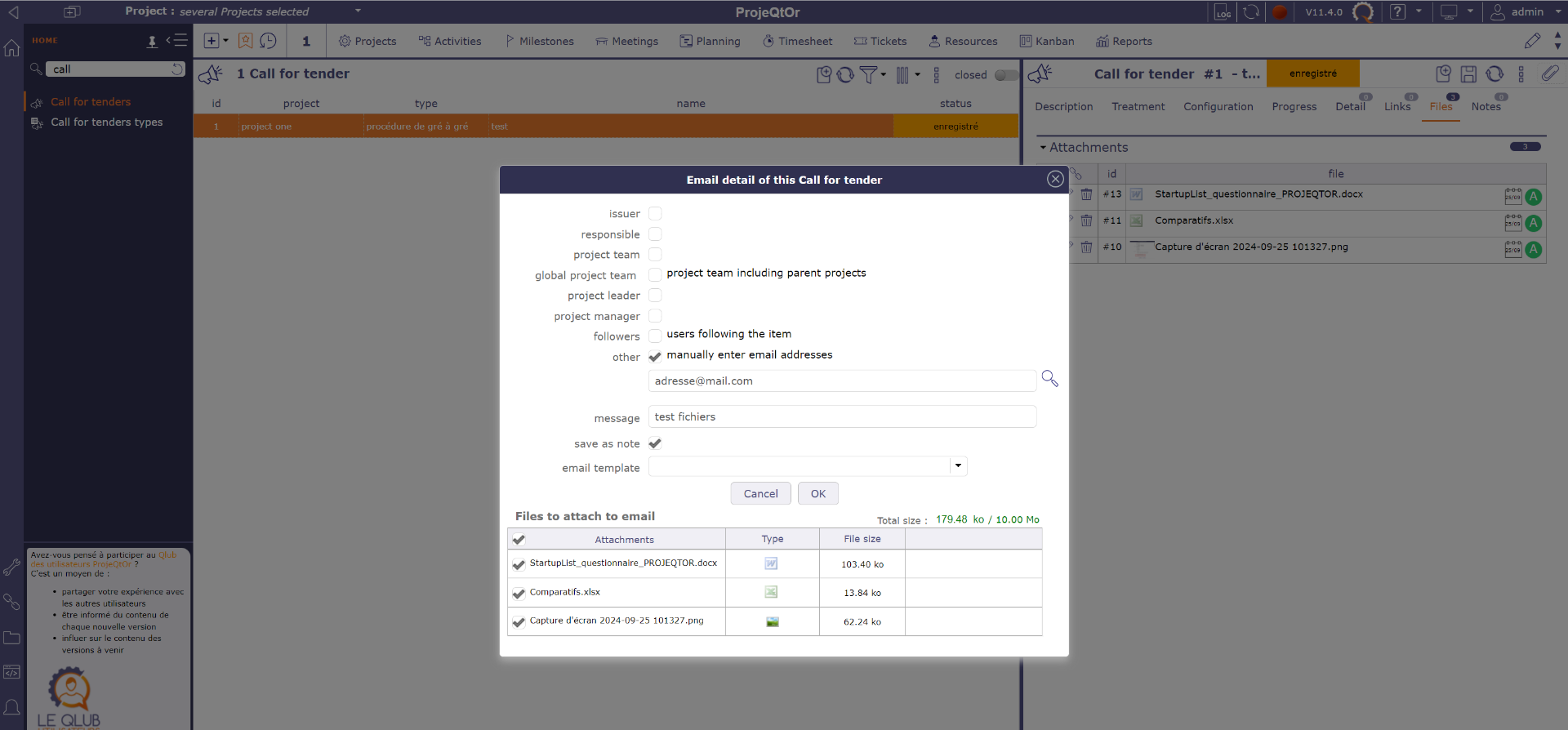ProjeQtOr free project management software - Email form without attachment option - ProjeQtOr