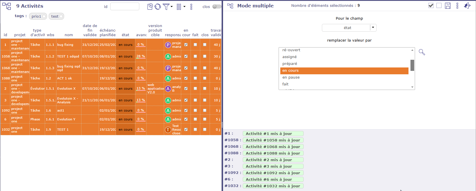 ProjeQtOr free project management software - Multiple update : doesn't change "done" status - ProjeQtOr