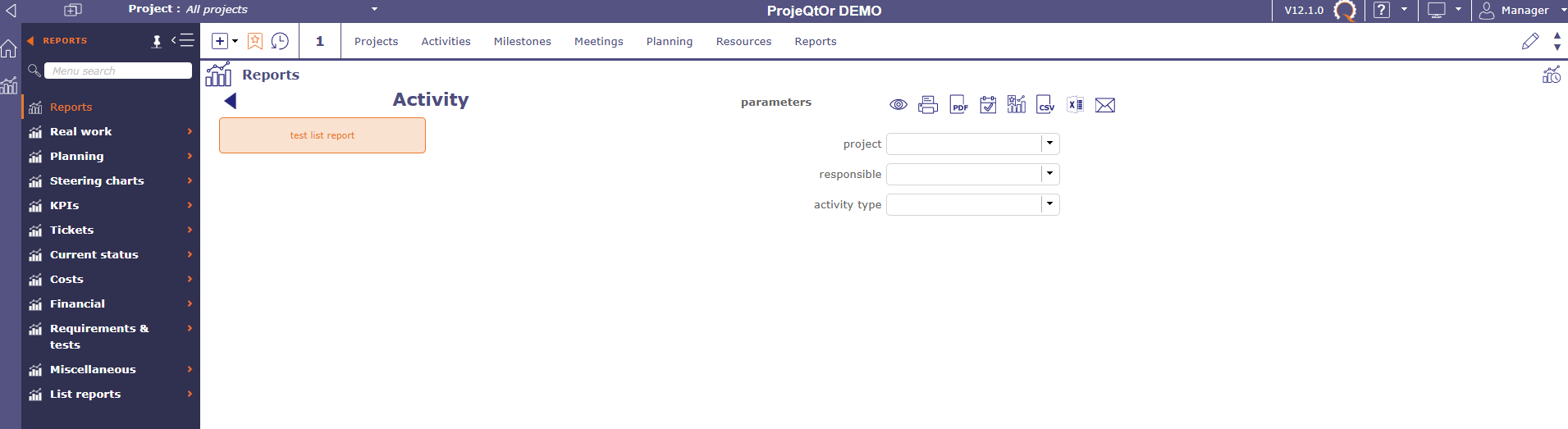 ProjeQtOr free project management software - List report - ProjeQtOr