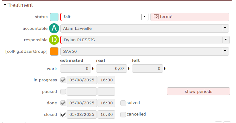 ProjeQtOr free project management software - Start / stop work on tickets screen - ProjeQtOr